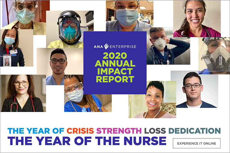 The 2020 ANA Enterprise Annual Impact Report highlights an extraordinary year that began as a worldwide celebration of nursing and dramatically shifted course in March when the coronavirus pandemic was declared. This report reveals the strength and dedication of nurses everywhere and the ANA Enterprise response as together we confronted the most challenging health crisis in the last century. View the report.